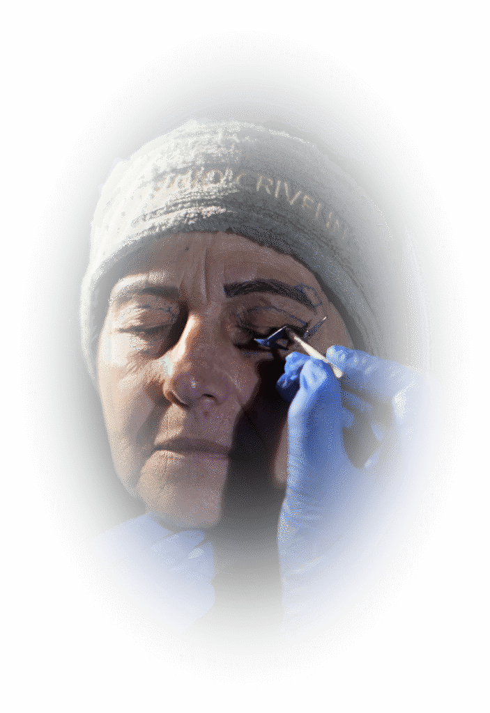 Durante a cirurgia, o cirurgião marca os sulcos naturais da pálpebra, faz incisões precisas e remove cuidadosamente o excesso de pele.